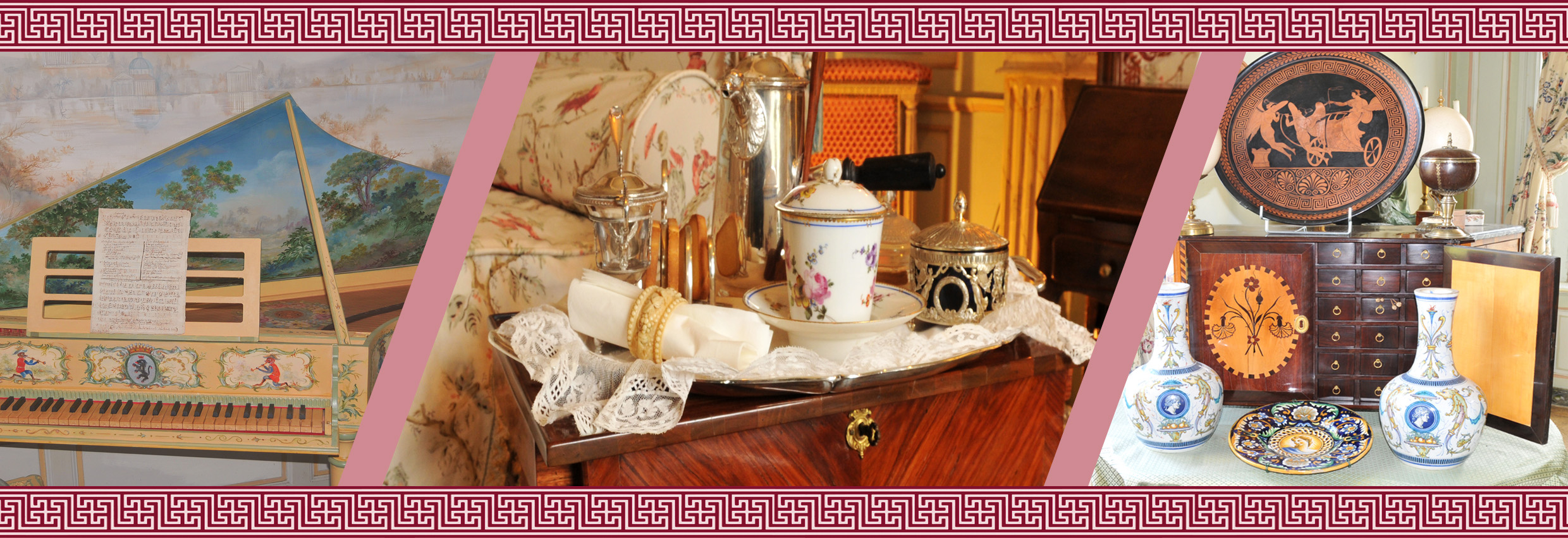 Entre le diner et le souper, on avait l’habitude de prendre une petite collation ou goûter. Au début du 18ème siècle la collation est salée et est remplacée à la fin du siècle par la prise du chocolat ou le service du thé. Dans le bureau, remarquez un service à thé aux dragons qui a été offert par l’Impératrice de Chine Cixi à la famille. Dans la chambre de Louise Aimée, le plateau du chocolat est posé sur une table « volante ». Dans la salle à manger, ustensiles et sucriers évoquent l’aventure du sucre.